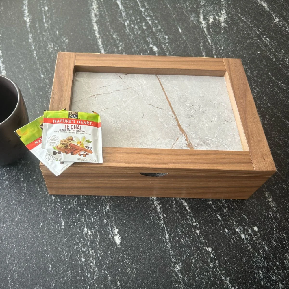 Una pieza funcional y sofisticada, diseñada para organizar sobres de té con estilo y dar un toque decorativo a cualquier espacio de tu hogar.