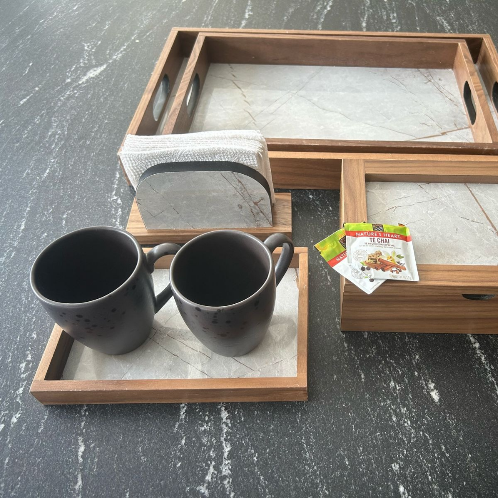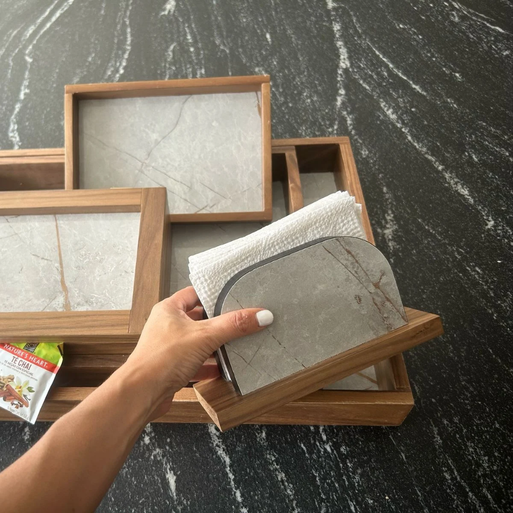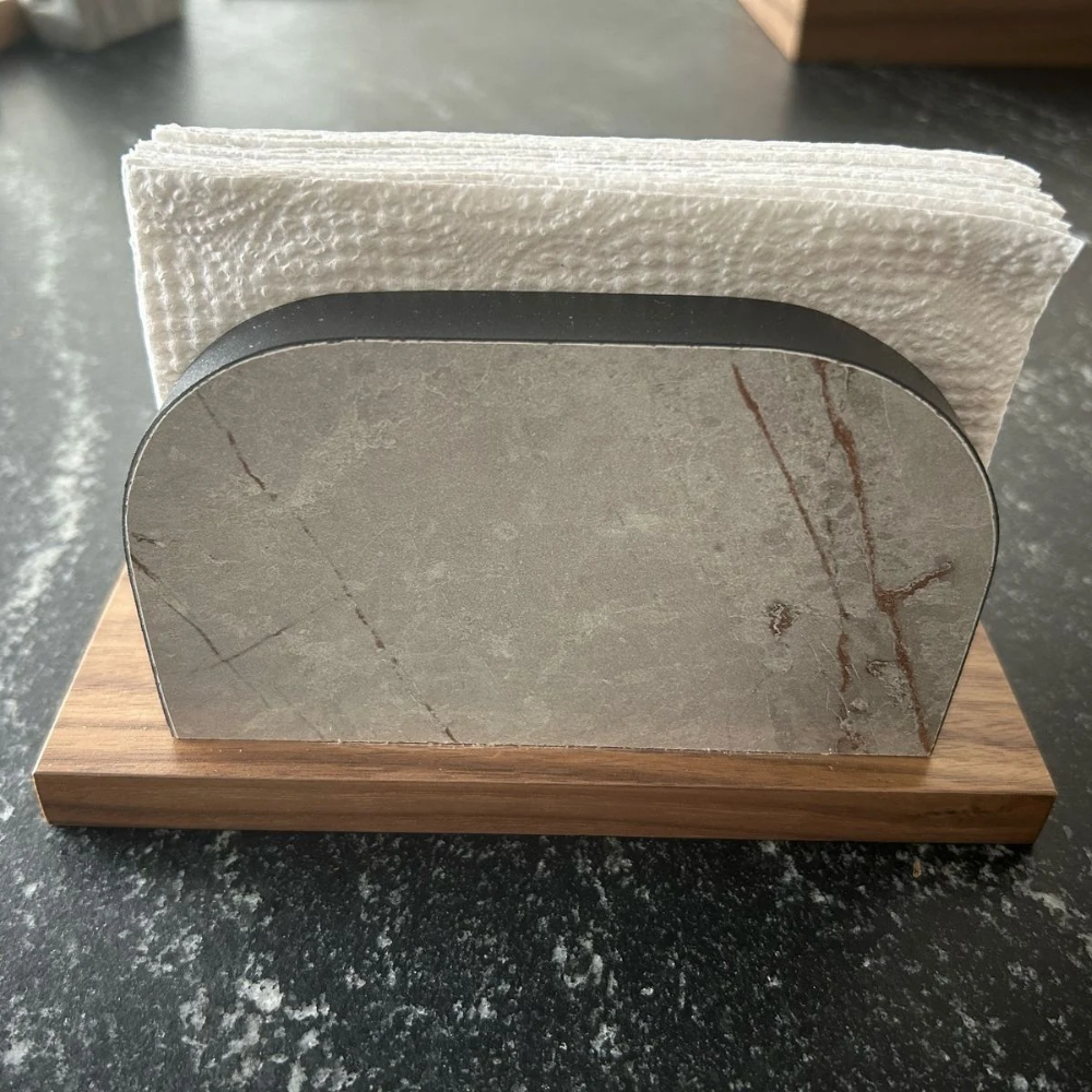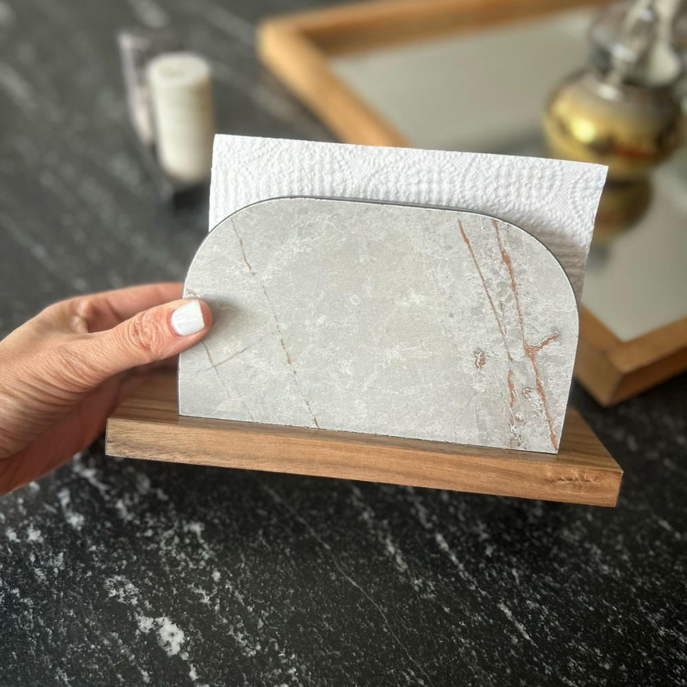 Servilletero de madera nogal con melamina decorativa