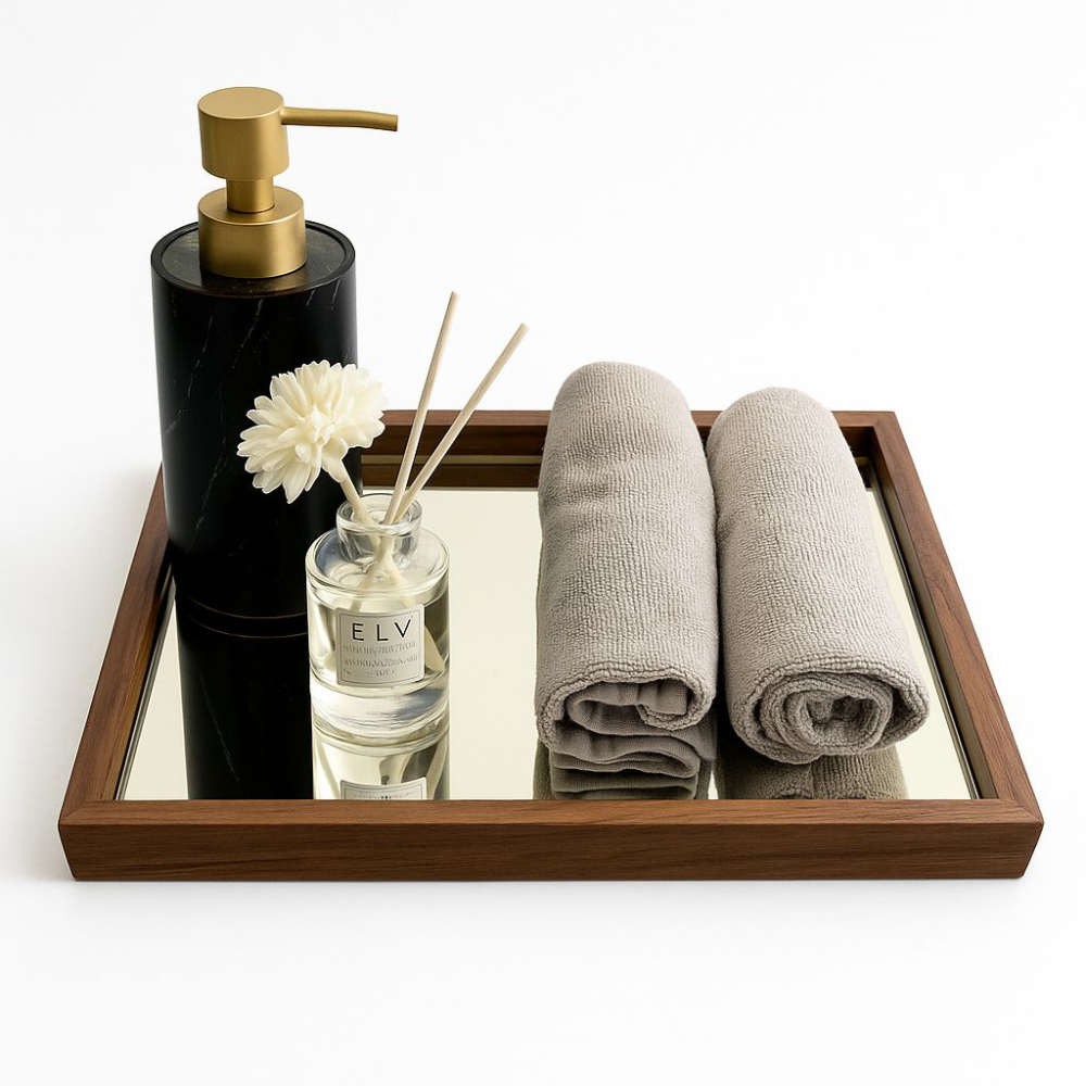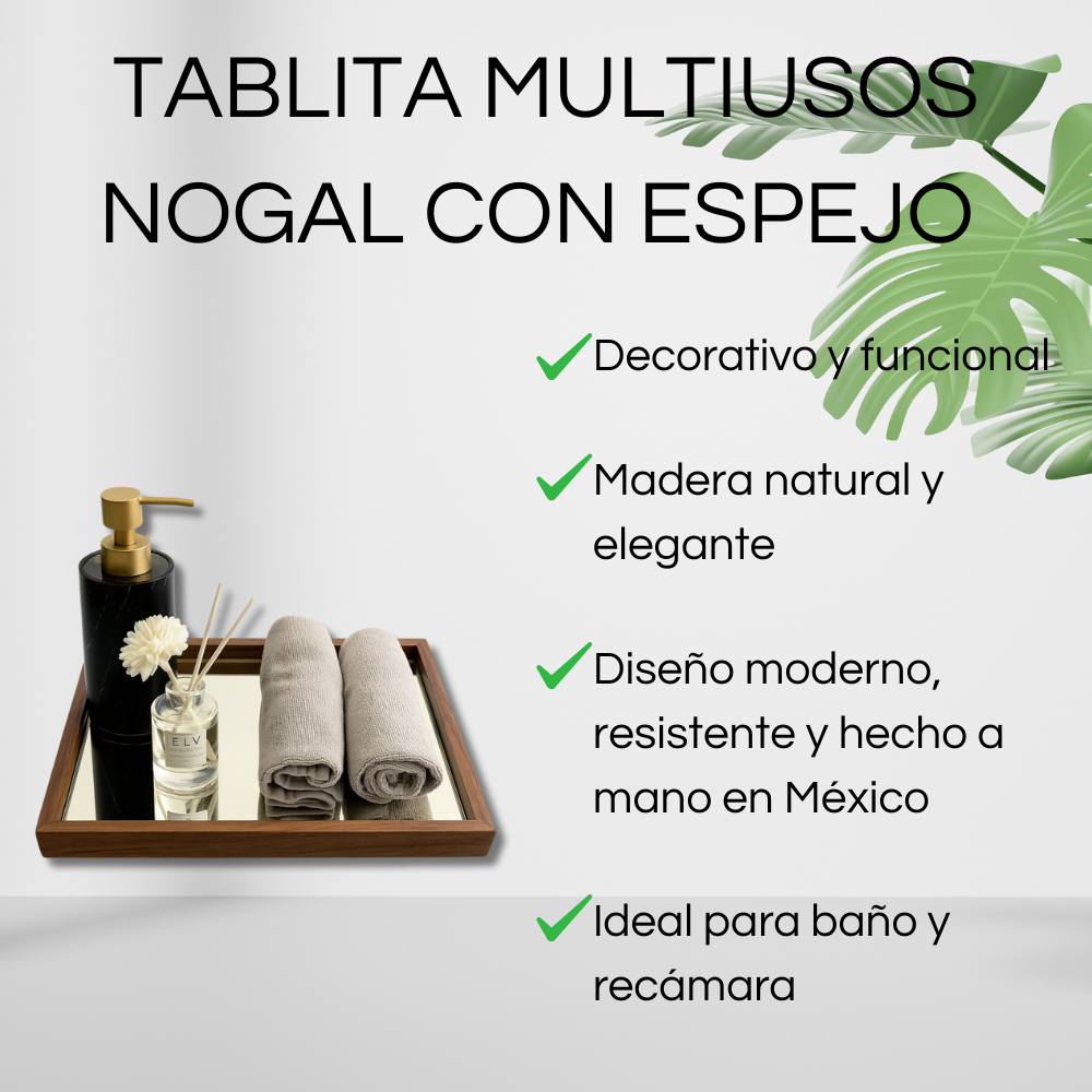 Tabla con bordes de madera natural ideal para organizar, toallas, cosméticos, perfumes, burós, etc..